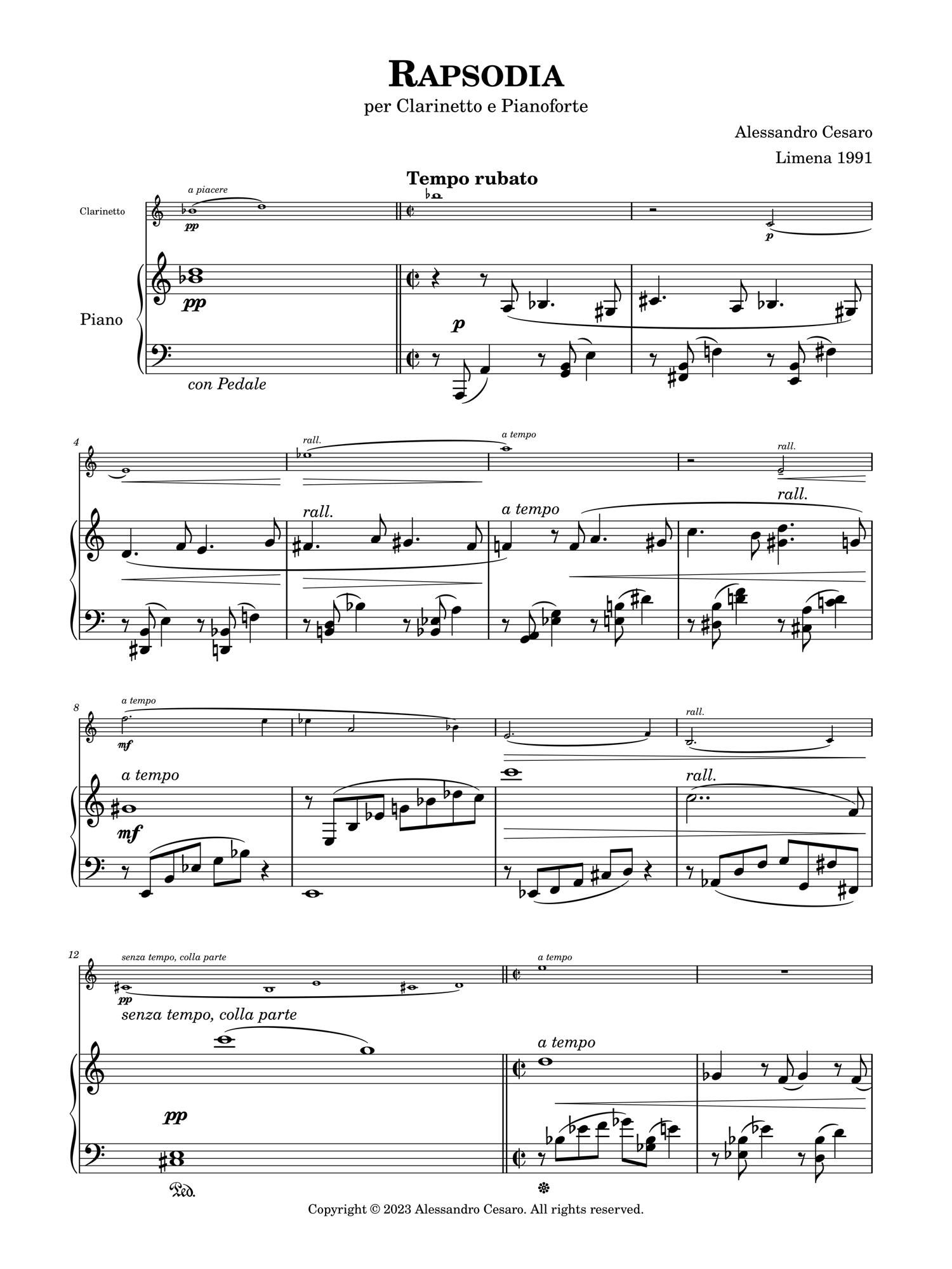 Rapsodia per Clarinetto e Pianoforte (1991)