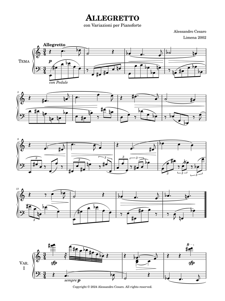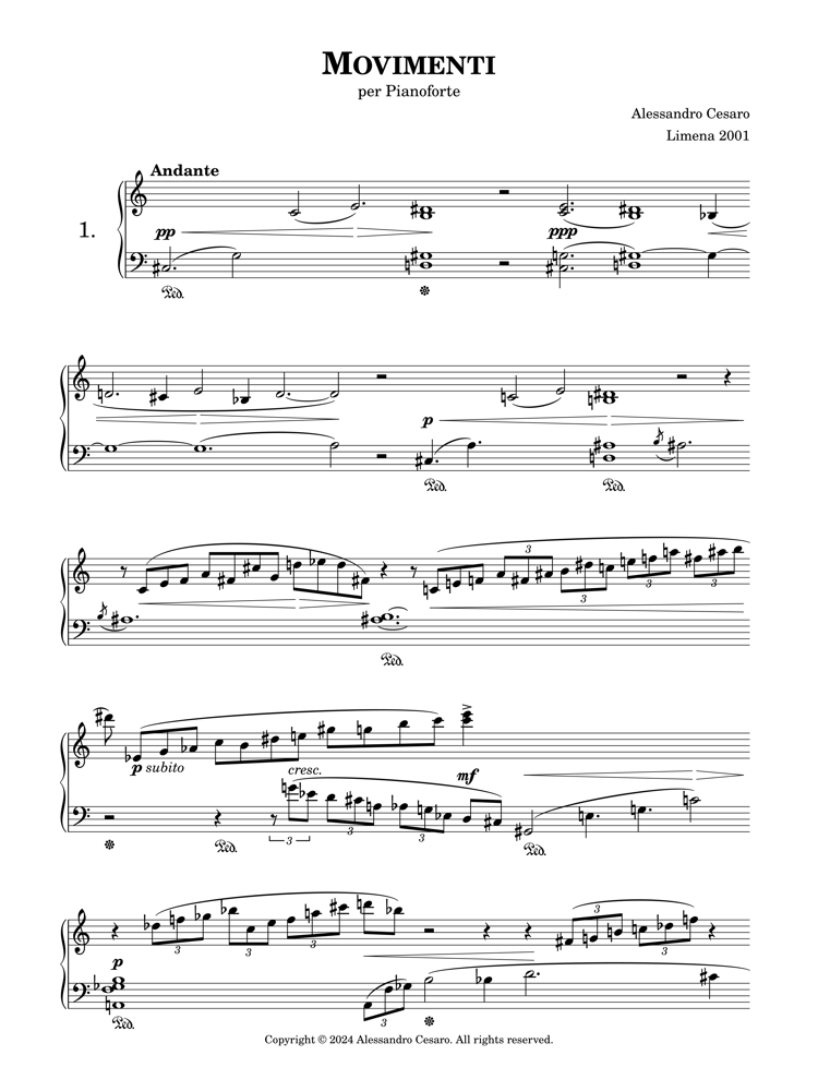 Alessandro Cesaro began to study music very early when he showed his interest in musical composition. Then he completed regular piano studies with Franco Angeleri at Padua’s Conservatory where he graduated with top marks and special mention when he was 16. Later he attended classes with Paul Badura-Skoda and Aldo Ciccolini. He was soon awarded in several National and International Piano Competitions including Premio Venezia and Yamaha Prize in Stresa. His achievement at the 48th CIEM Geneva is especially important and places him in evidence at the age of 18. His recitals throughout Italy are countless and he usually plays also in Switzerland, Germany, Argentina, Mexico and Croatia. He often collaborates with many notable musicians including Claudio Scimone, Paul Badura-Skoda, Anton Nanut and Pedro Ignacio Calderòn. An uncommon feature of his personality is the extraordinary versatility which allows him to have in his repertory all the major composers from Haydn to the moderns. He has recorded with Velut Luna, Rivoalto and Azzurra Music. He is equally active also as a composer and his output includes piano music, chamber music with various combinations and some orchestral works. His eclectic but personal style is significantly changed during the years from neoclassicism to atonality, from aleatory to structuralism.